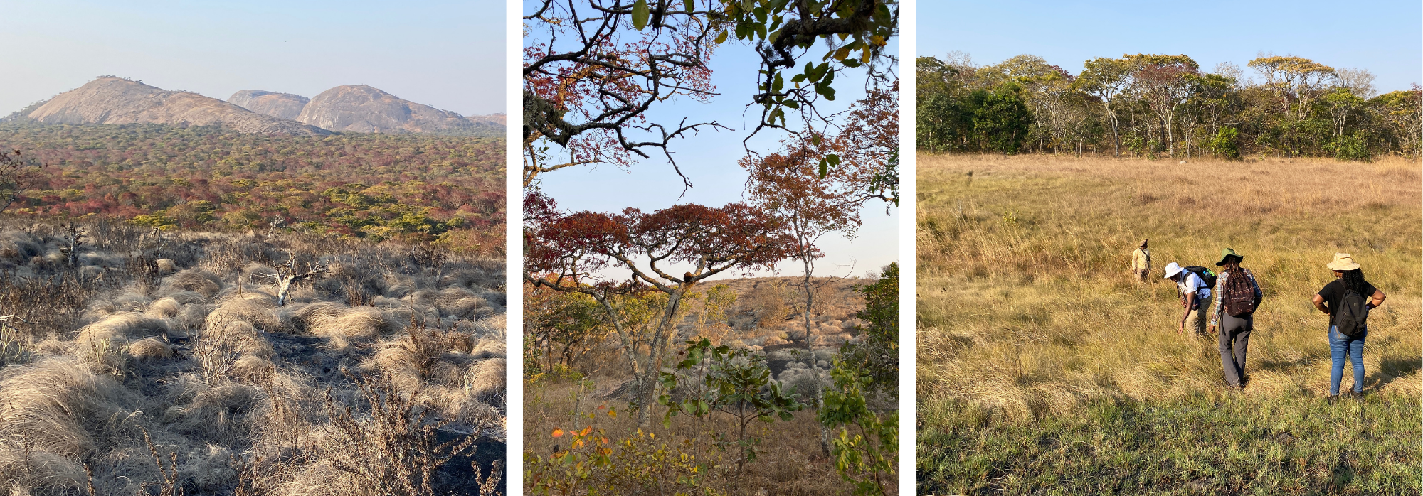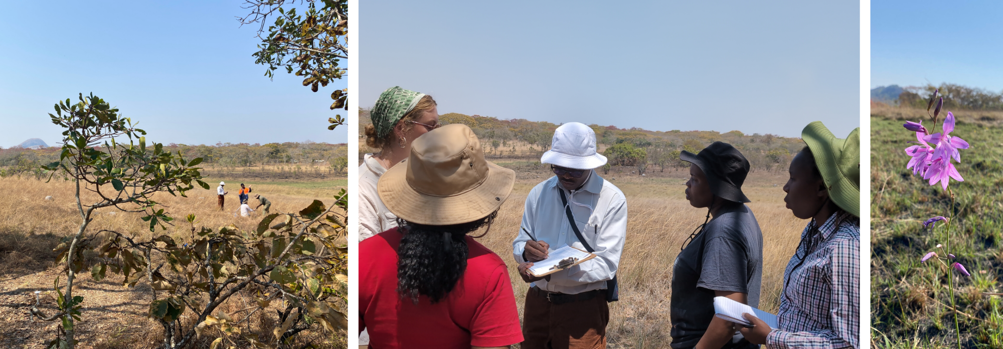 Our transect spanned the transition from miombo to the gentle grassy slopes and down to the dambo drainage line. We tested out a new ‘moving window’ design for the Global Grassy Group protocol for recording herbaceous species and trained researchers who are commencing projects in Zambia, Democratic Republic of the Congo, Zimbabwe and South Africa. Each circular subplot, 1m in diameter, is a snapshot of ground-layer plant community composition and is a way to track species that appear, persist, or vanish over space and time. We had expected most plants to be dormant at this time of year, but the data sheets told quite a different story - scattered forbs were in flower and many grasses were (surprisingly) identifiable.