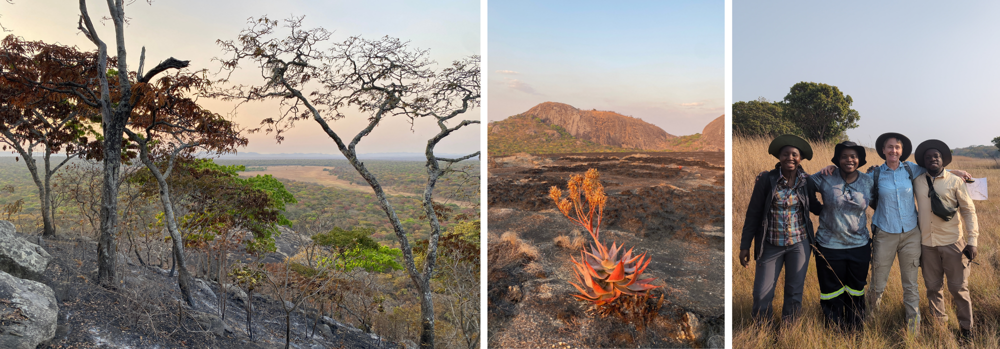 Monitoring vegetation through big fires and small variations in soil moisture helps explain how species composition and ecosystem function shift through cycles of disturbance and recovery. This field season in particular reminded us that grassy ecosystems are always in flux - something best considered from back up on the inselbergs at sunset.